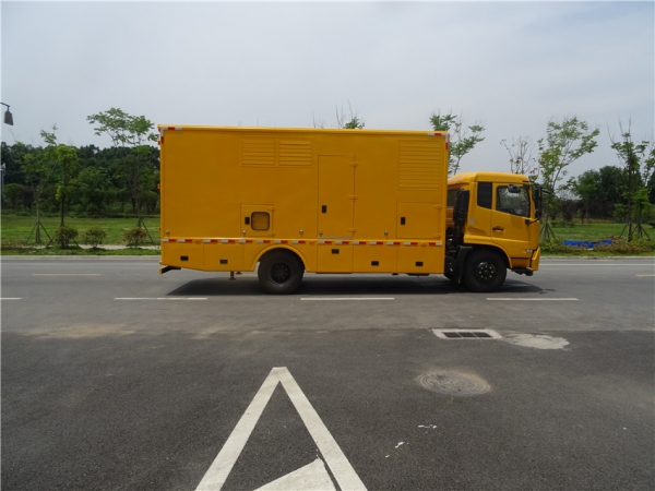 6.防音:电源车的车箱、车门等全部用双层装饰,并装有吸音板消音;排气管用保温棉包裹,噪音**低可**在75dB(A)以内。